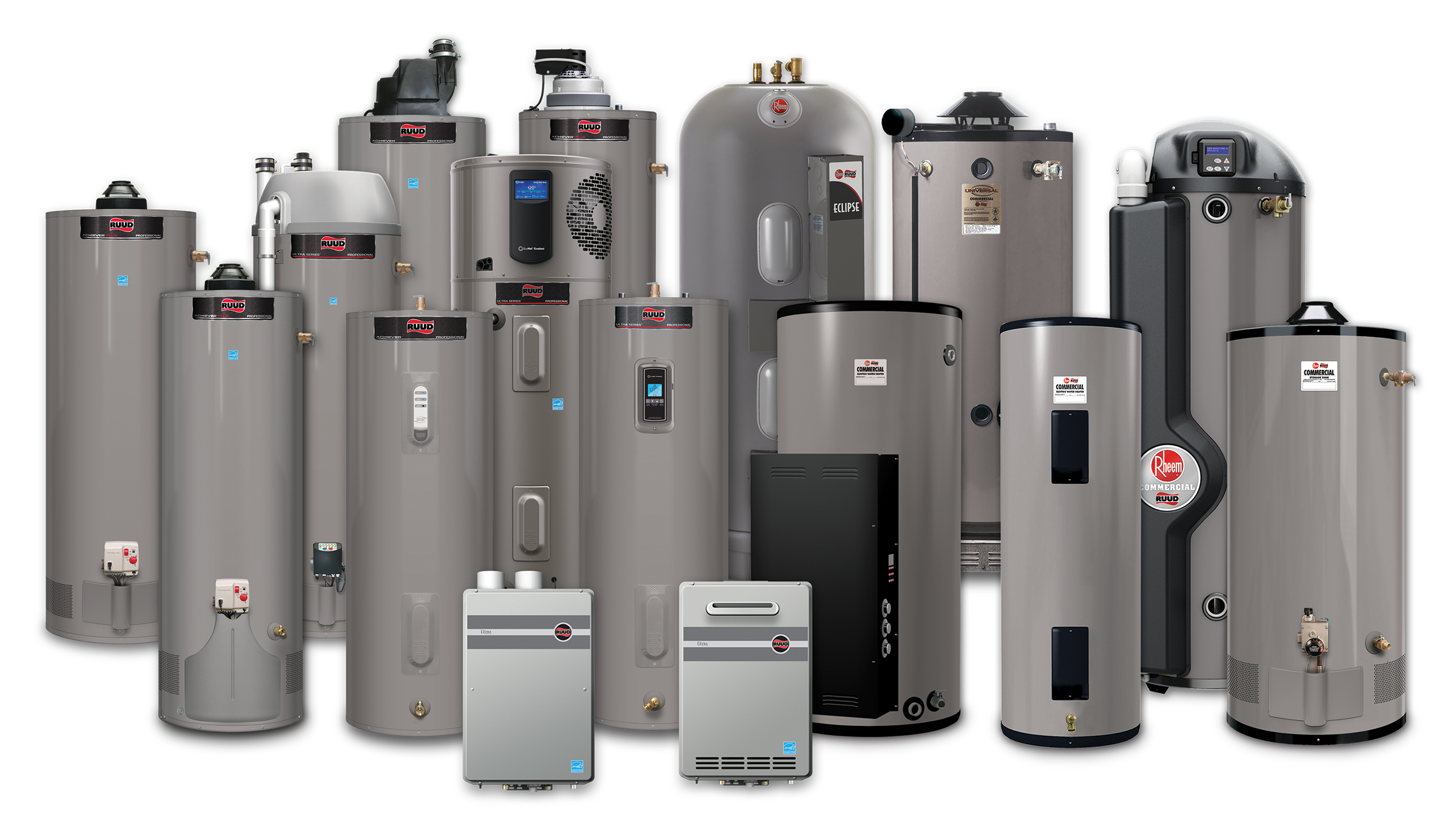 Ruud commercial water heaters offer a complete line of heavy-duty and light-duty products for all your commercial water heating needs. Their products offer the most diverse tank components in the industry. From glass on steel, to stainless steel, and polybutylene, Ruud commercial water heaters are up to the job.